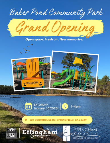 Join us as Effingham County proudly celebrates the grand reopening of Baker Park, unveiling an enhanced community space that reflects the County's continued commitment to quality of life, outdoor recreation, and shared experiences. Guided by the motto "Open space. Fresh air. New memories," this ribbon cutting marks the beginning of a renewed chapter for one of Effingham County's most valued public amenities.